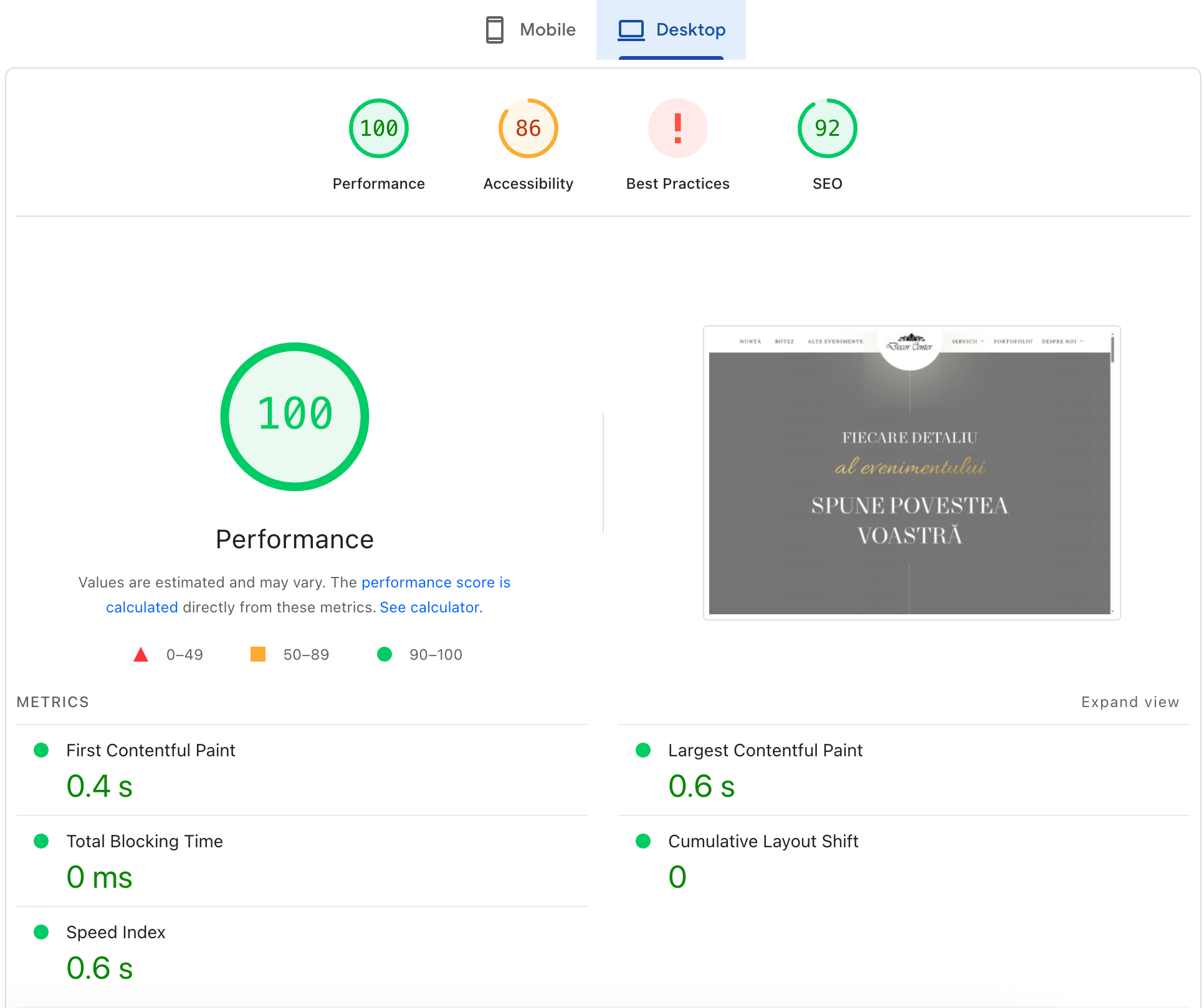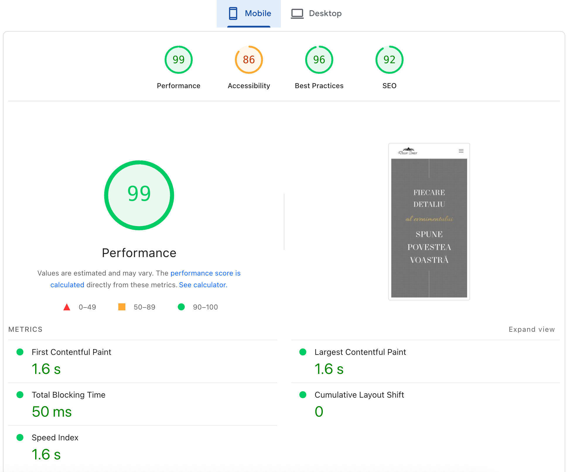 Site-ul a fost optimizat la maxim pentru viteză atât pe dispozitive mobile cât și pe desktop, cu rezultate maxime!